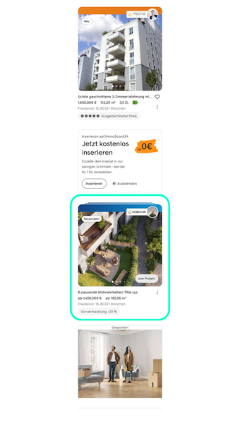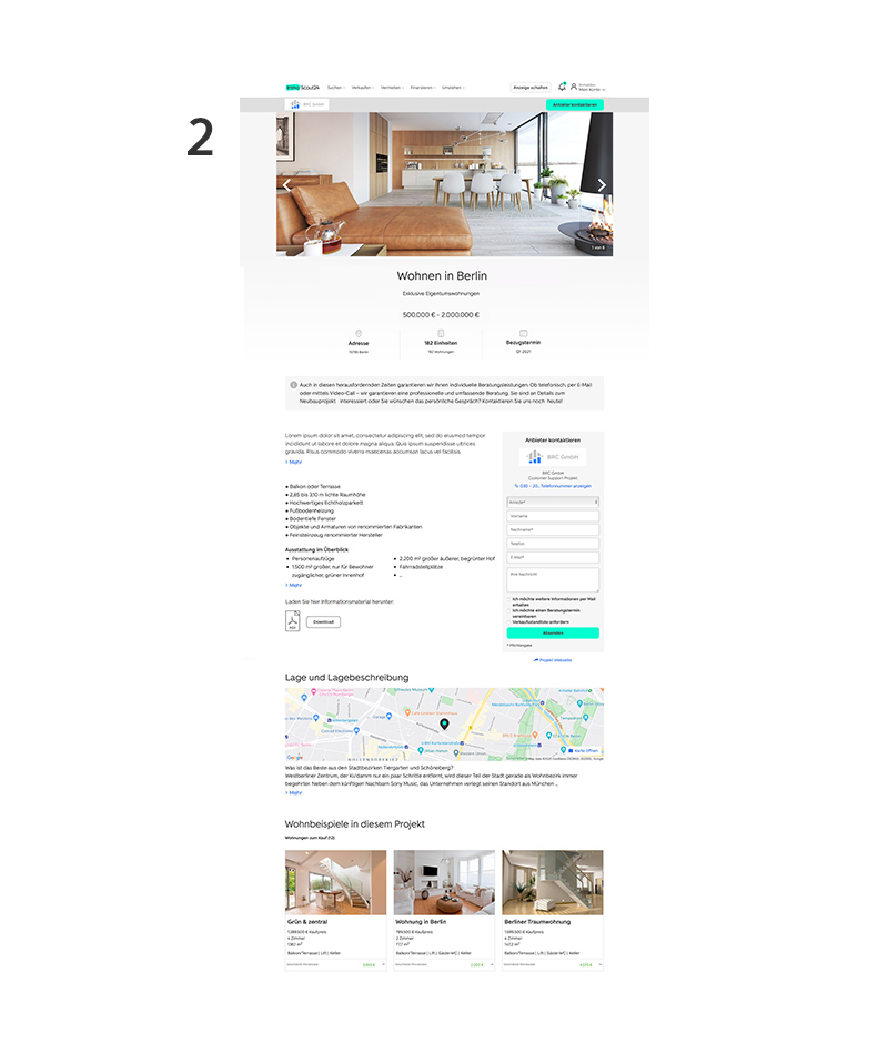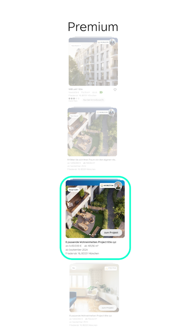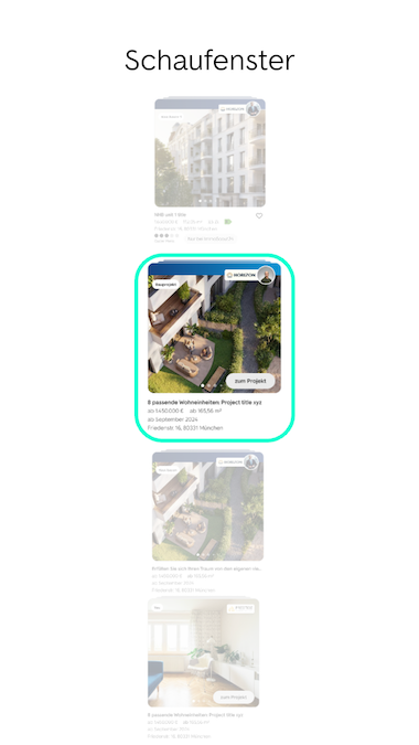Mit den Projektpaketen haben Sie die Möglichkeit all Ihre Wohneinheiten, die zu einem Neubau- oder Sanierungsprojekt gehören, aufmerksamkeitsstark und übersichtlich in der Ergebnisliste zu platzieren. Dank der besonderen Projektdarstellung werden alle zum Projekt gehörigen Wohneinheiten gebündelt dargestellt und der Suchende erhält auf der dazugehörigen Projektseite einen umfassenden Eindruck zum Gesamtprojekt.