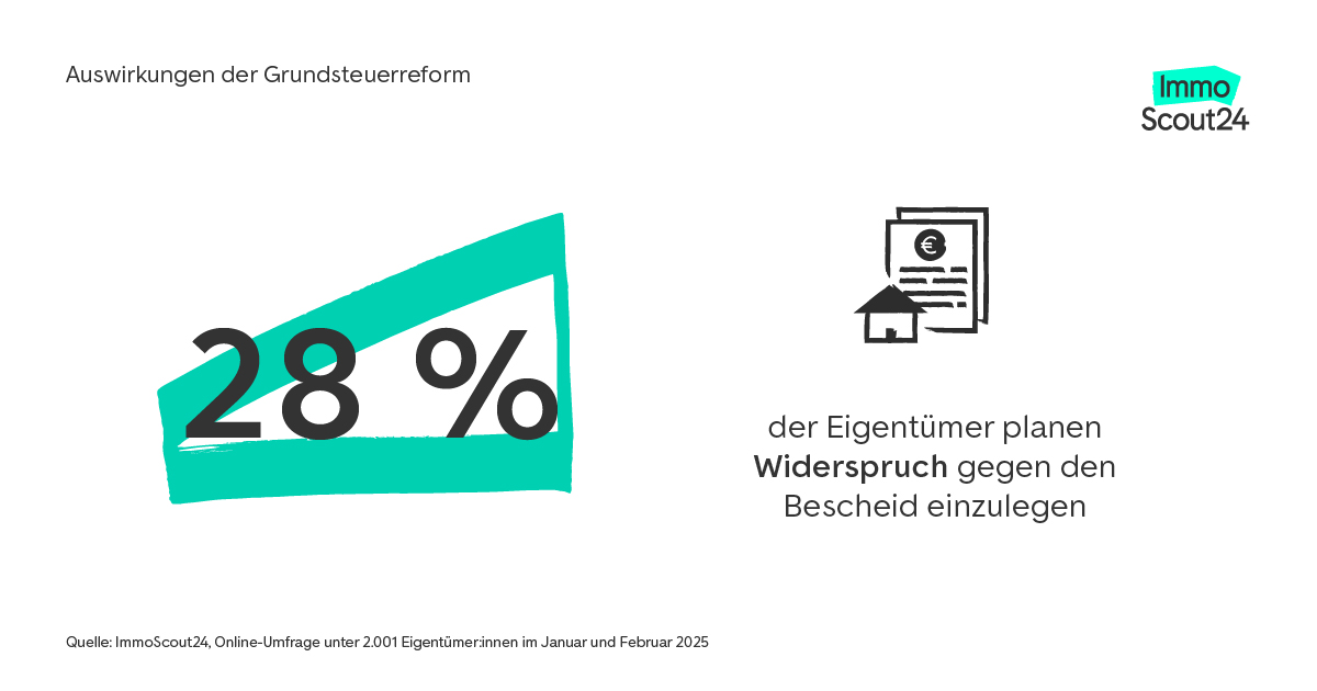 „In diesem Frühjahr spüren viele Eigentümerinnen und Eigentümer die Grundsteuerreform in ihrem Geldbeutel. Der neue Grundsteuerbescheid sorgt in den meisten Fällen für höhere Betriebskosten. Was für die Kommunen eine wichtige Einnahmequelle ist, führt jetzt für den Einzelnen zu einer höheren finanziellen Belastung“, sagt Daniel Hendel, Vice President Product Management bei ImmoScout24. „Mehr als ein Drittel schauen daher genau, ob sie einen Anspruch auf Steuerentlastung durchsetzen können.“